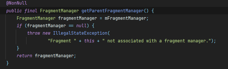 parentFragmentManager는 fragmentManager가 null인 경우 IllegalStateException을 발생시킨다는 것을 알게되었고,